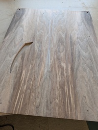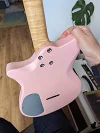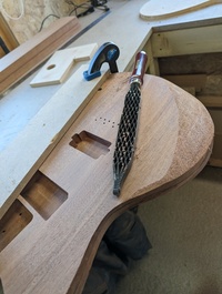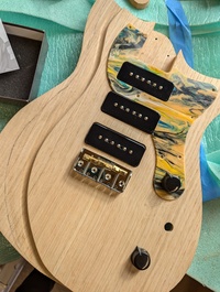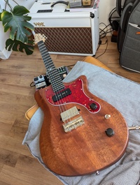 The original interpretation of the idea I've had for the last couple of years. Solid body, with the elongated arm carve.