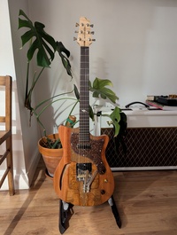 The Bolt is the first model from Blanchflower guitars which are made by myself (Marcus) at home in my workshop. I take hand selected timbers and marry them together to make beautiful, tonally vibrant instruments. The workshop environment is primarily me using both tools that I've grown familiar with over my years working as a carpenter and newer wood manipulating devices that I've picked up along the way to craft these instruments.